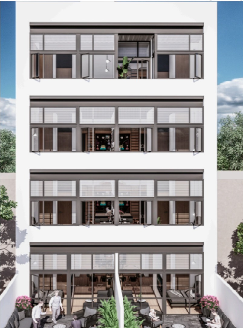Edificio de sólo 4 pisos.