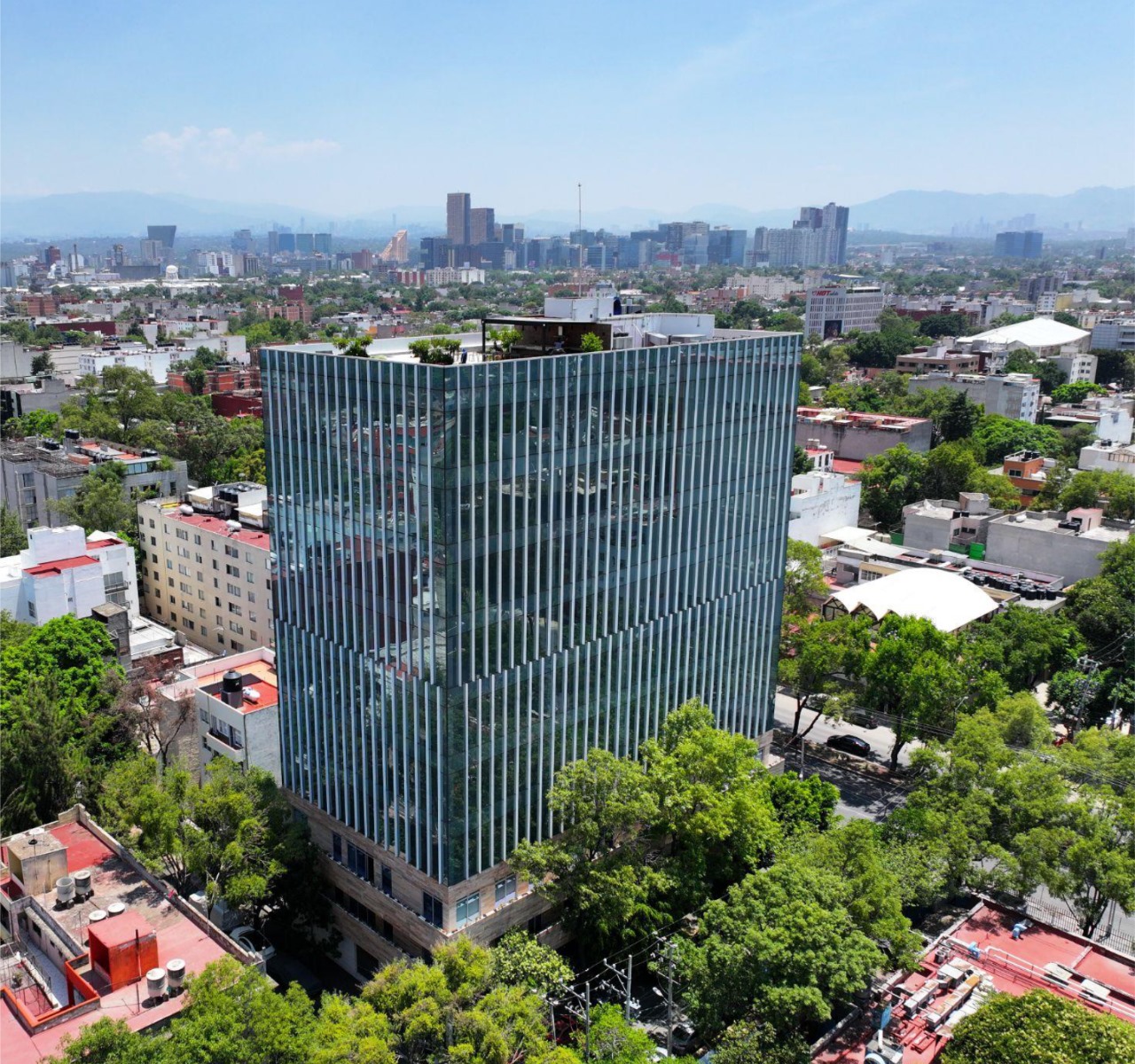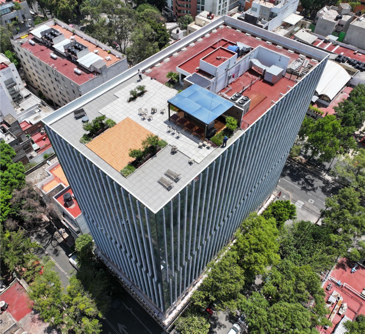 Inicia este año en un edificio de 9 pisos nuevo que cuenta con una obra robusta y moderna en la cuál tendrás en planta baja un área comercial y un lobby con vigilancia 24/7, elevadores modernos de última generación y gran espacio, 5 niveles de estacionamiento con más de 250 lugares disponibles y valet parking para tu comodidad, instalaciones eléctricas, hidraúlicas listas para baños, cableados y todo lo que tu Empresa necesite, roof garden para 70 personas con asadores y servicios de baños en donde podrás realizar un evento o presentación.