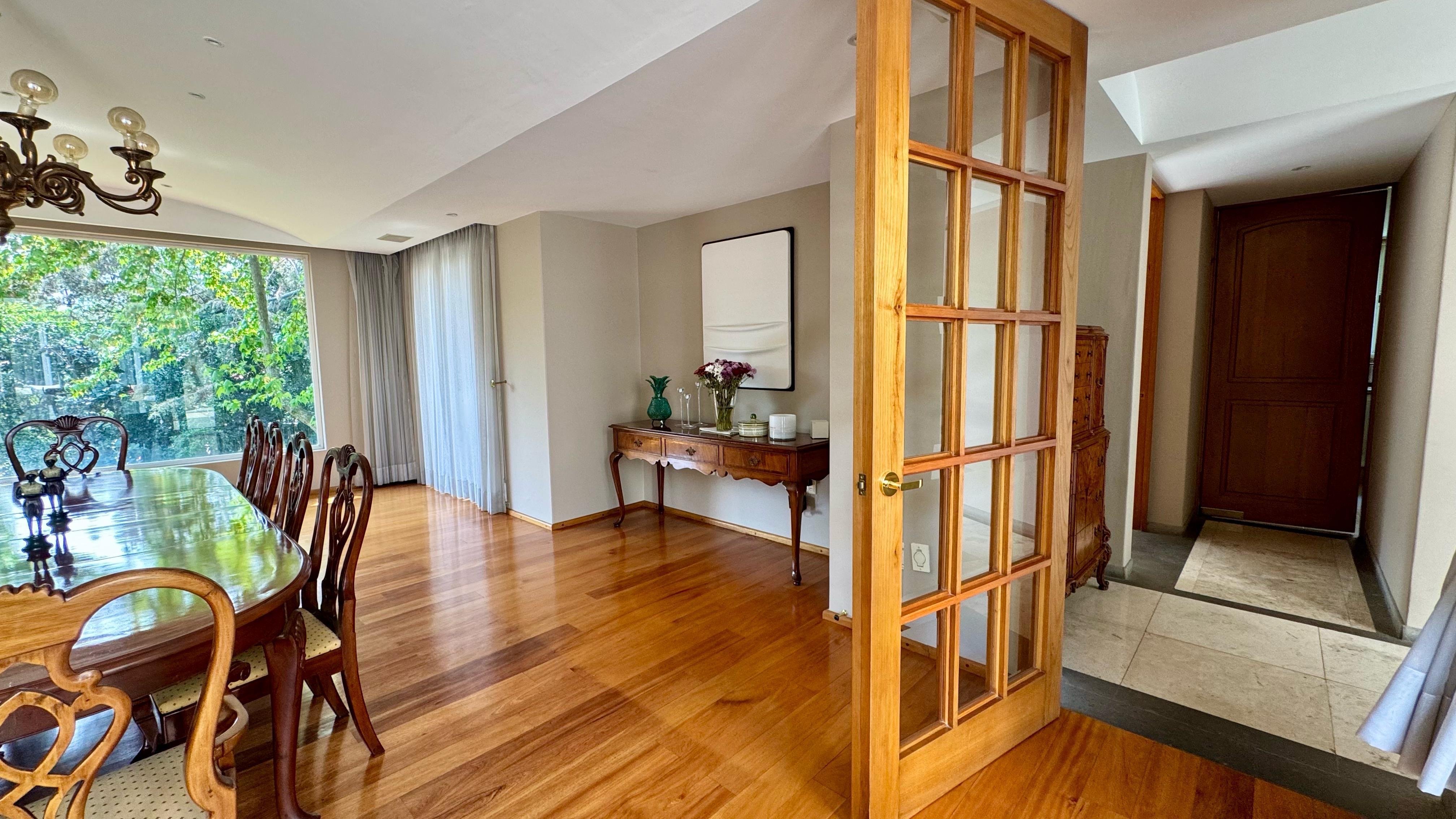 Un salón de juegos muy amplio con vista al jardín, elevador para alimentos, medio baño con vista. Y habitación ideal para tus visitas con vista a una terraza y baño completo.
