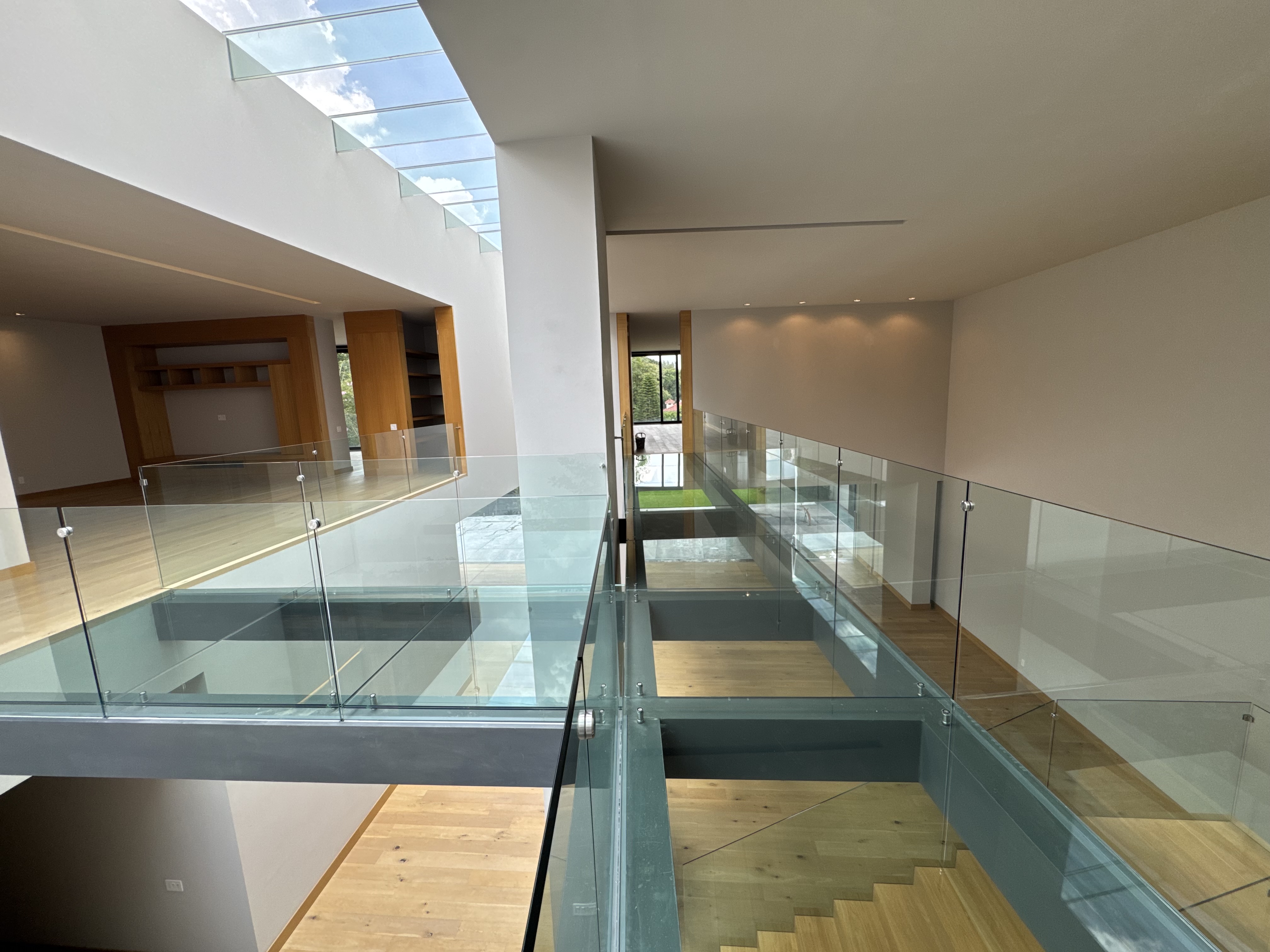 Accesos y pasillos de acero con cristal los cuales tienes que conocer para ingresar a la recámara principal con vista al jardín, baño con doble lavabo y doble sanitario, hermoso vestidor.