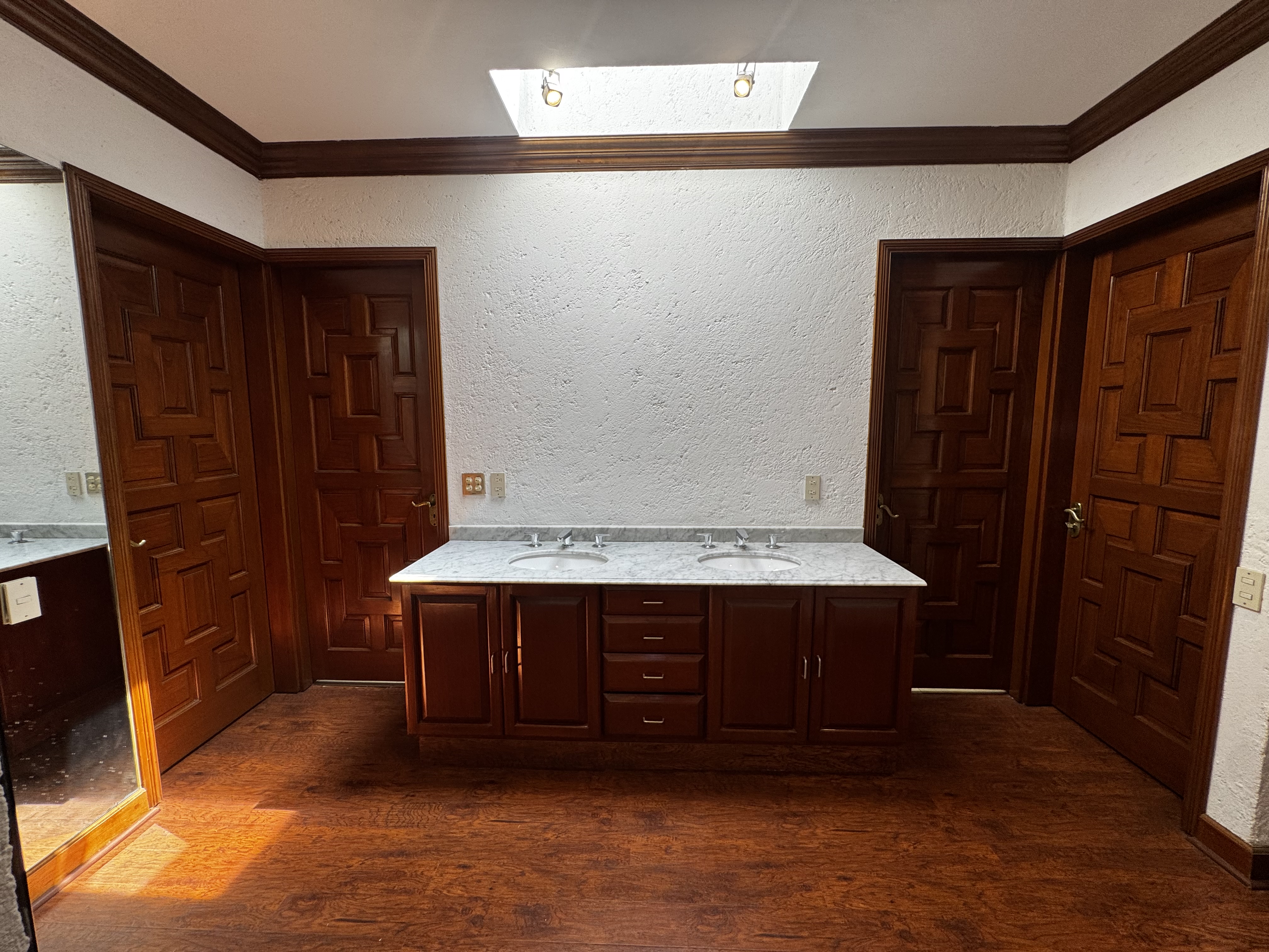 Recámara principal de muy buen tamaño con baño y regaderas independientes, tocador y doble vestidor totalmente independientes.