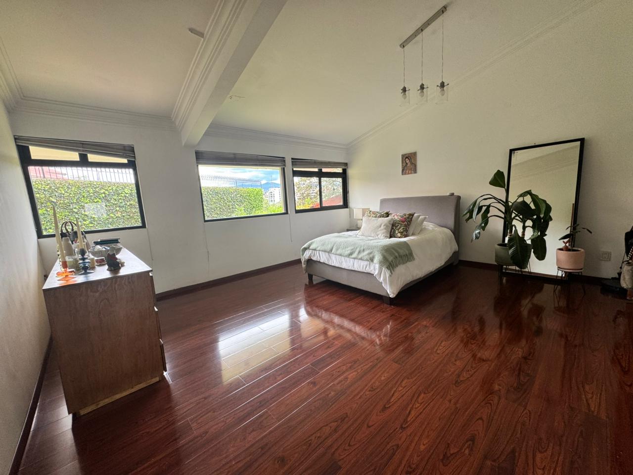 La propiedad cuenta con un amplio jardín, con mucha iluminación natural, destaca por sus espacios generosos y su diseño con doble altura en varias áreas.