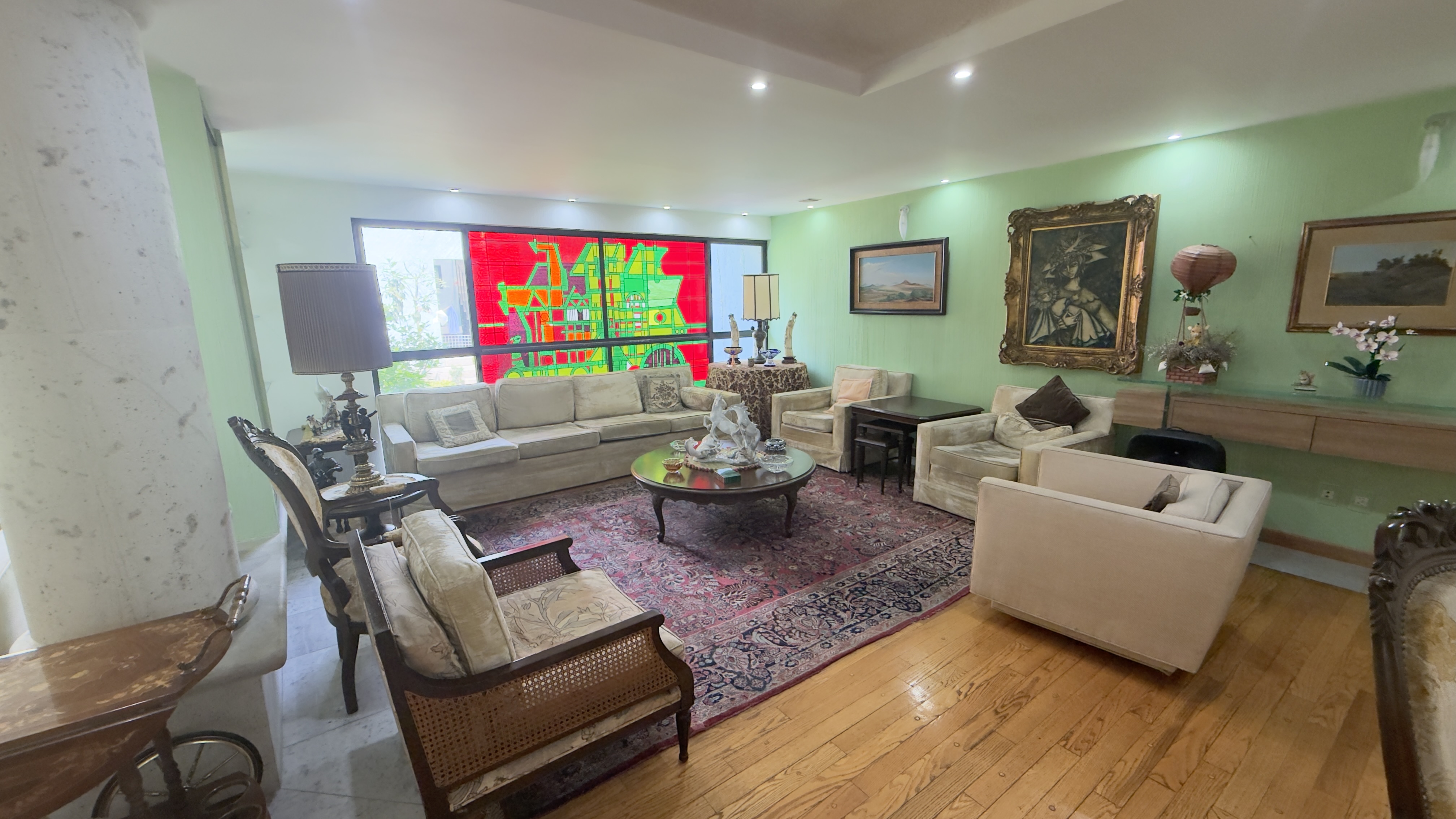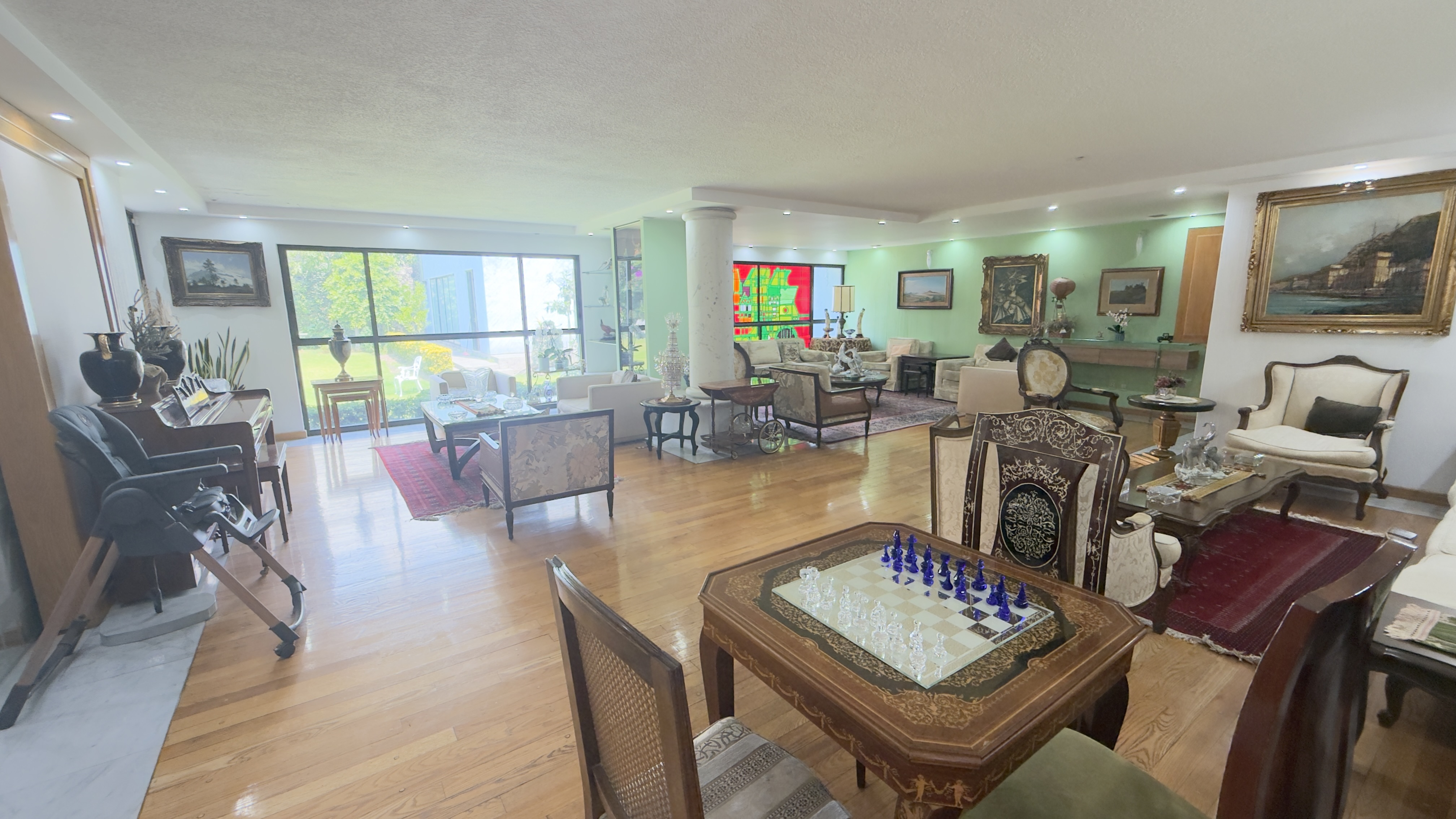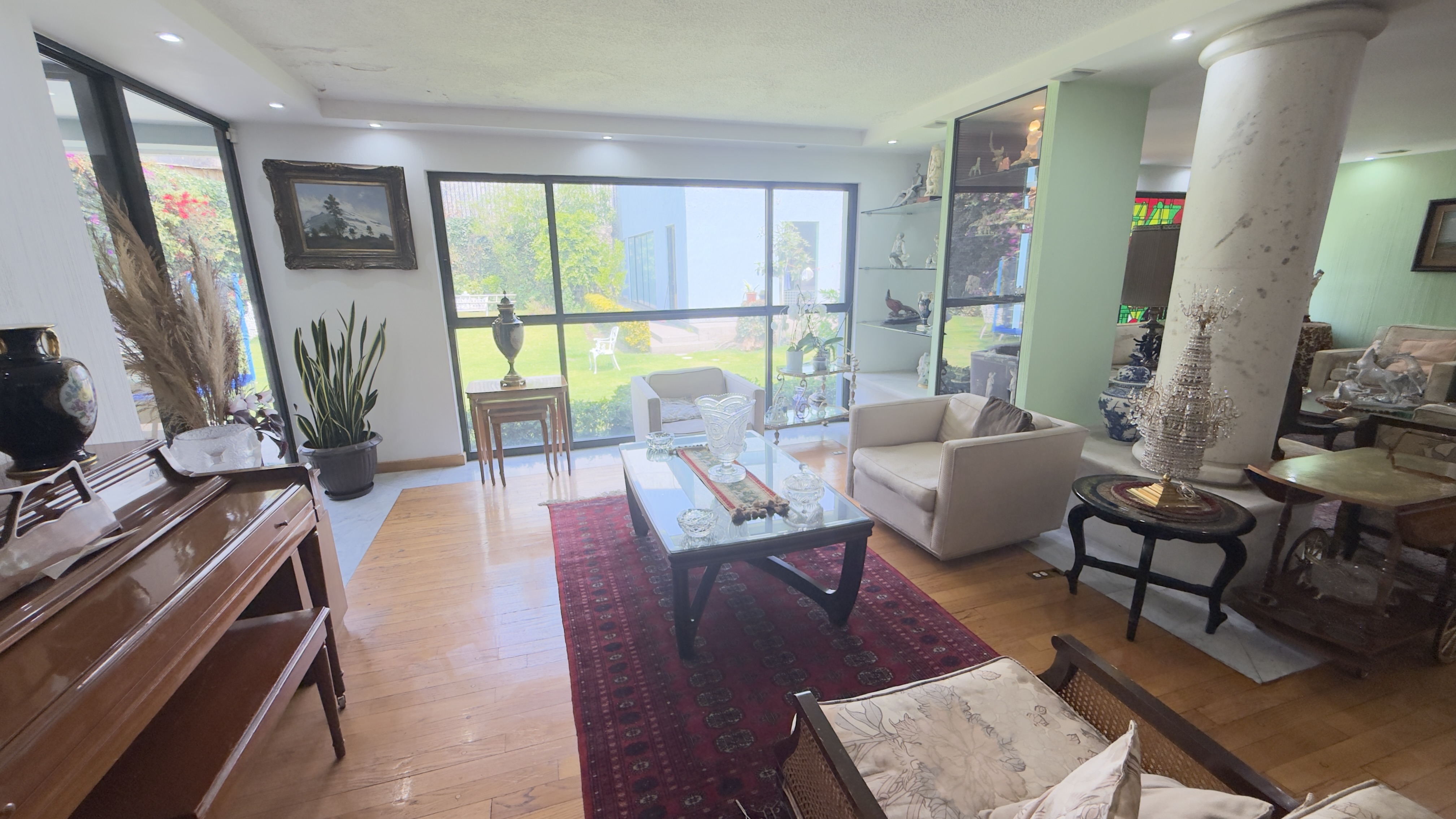 Amplia sala con su espectacular vista al jardín.