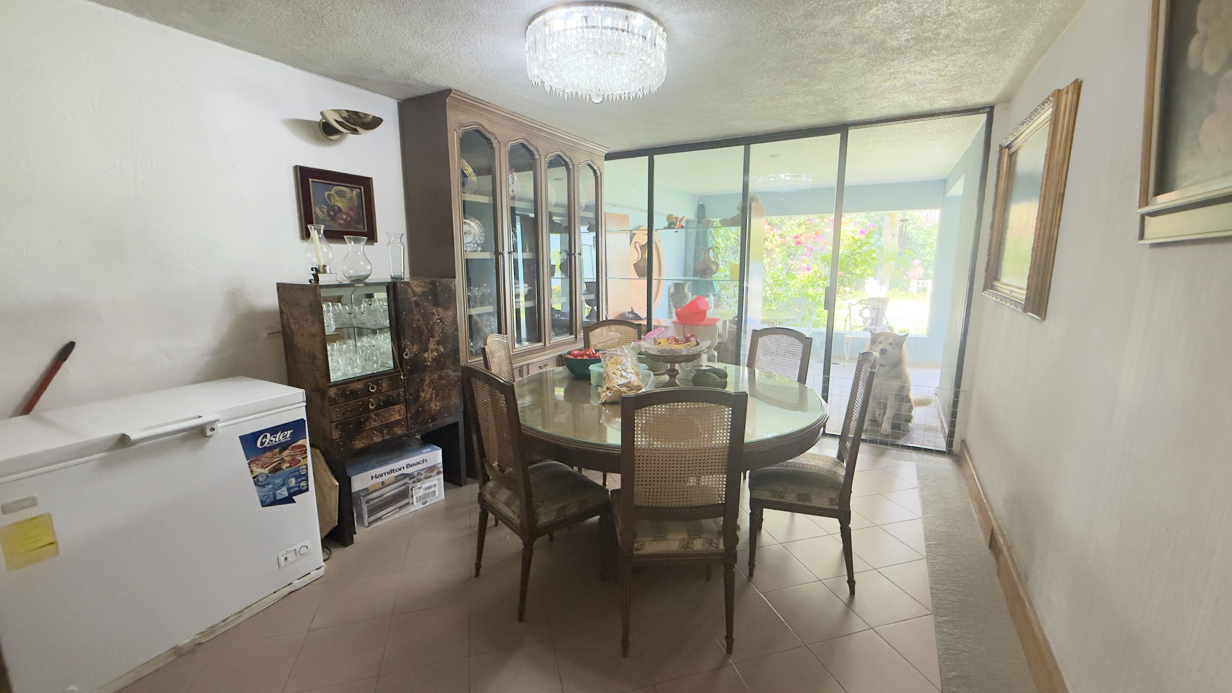 Antecomedor con cuarto para vajillas y salida a la terraza que se integra al jardín de la propiedad.