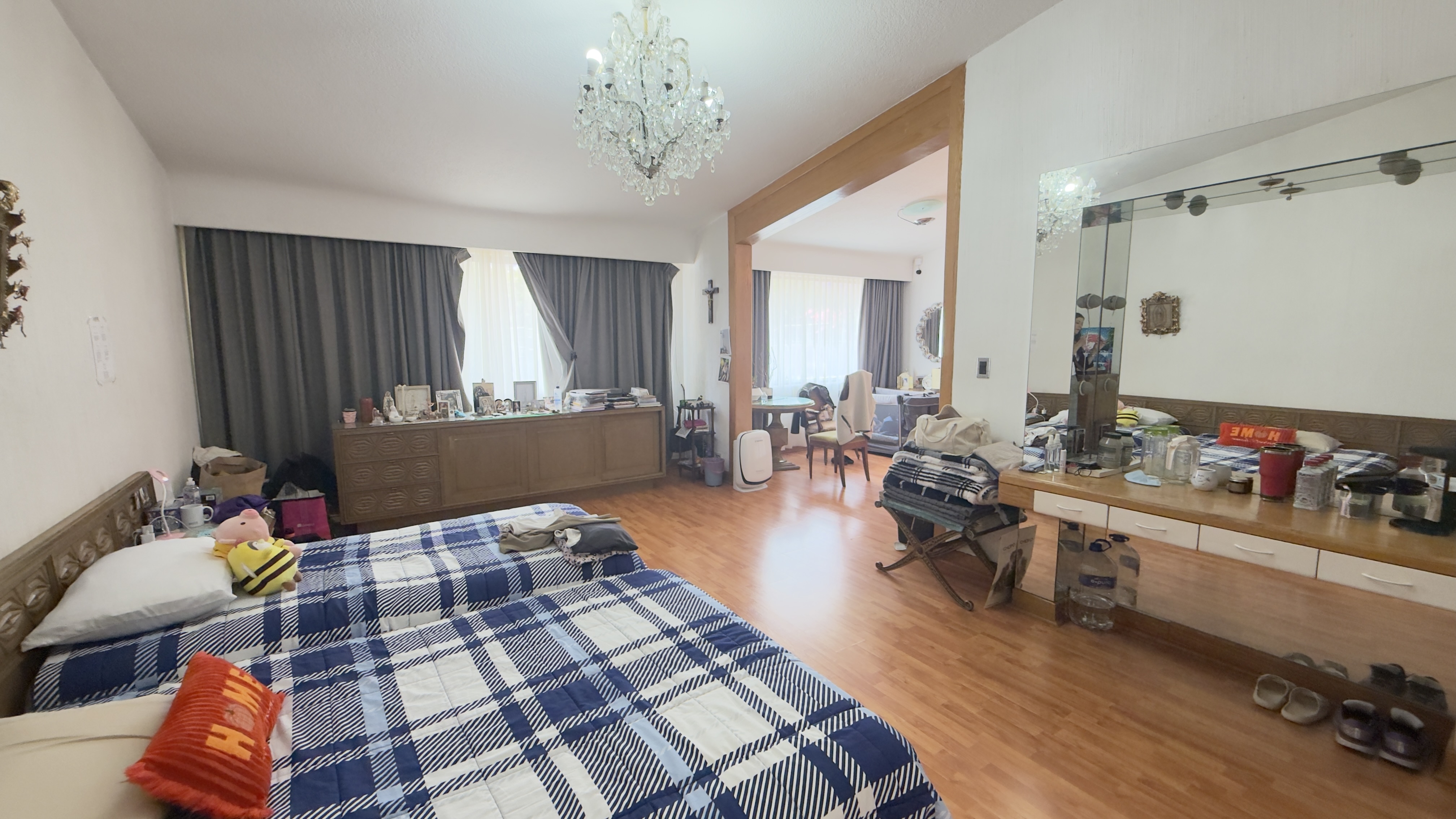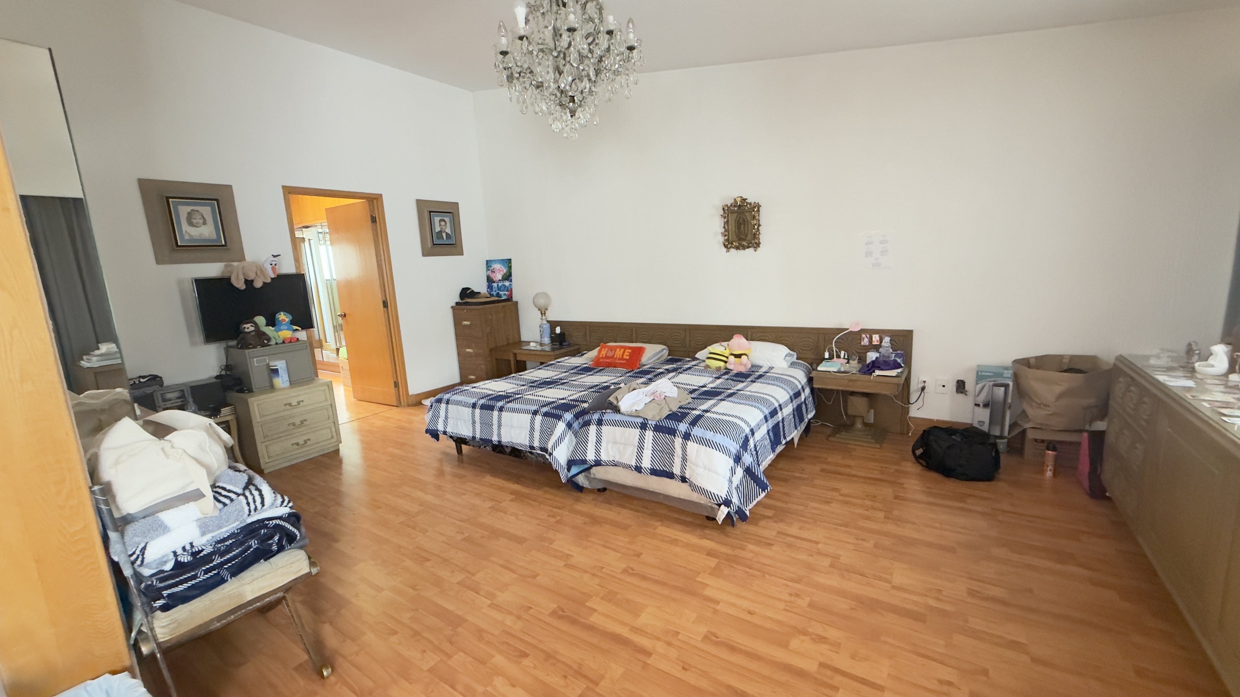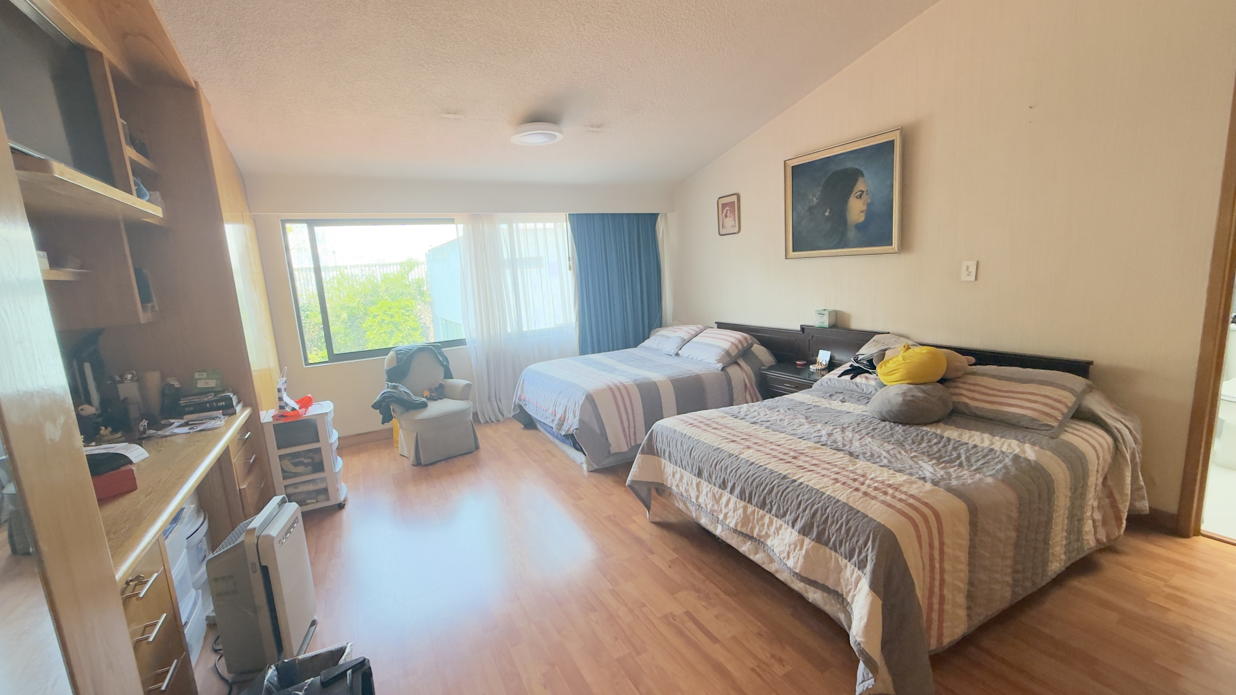 Recámara principal con gran espacio de recibidor para sala con piso de duela laminada, un enorme vestidor con excelente iluminación y ventilación. Baño con jacuzzi y pisos de mármol.