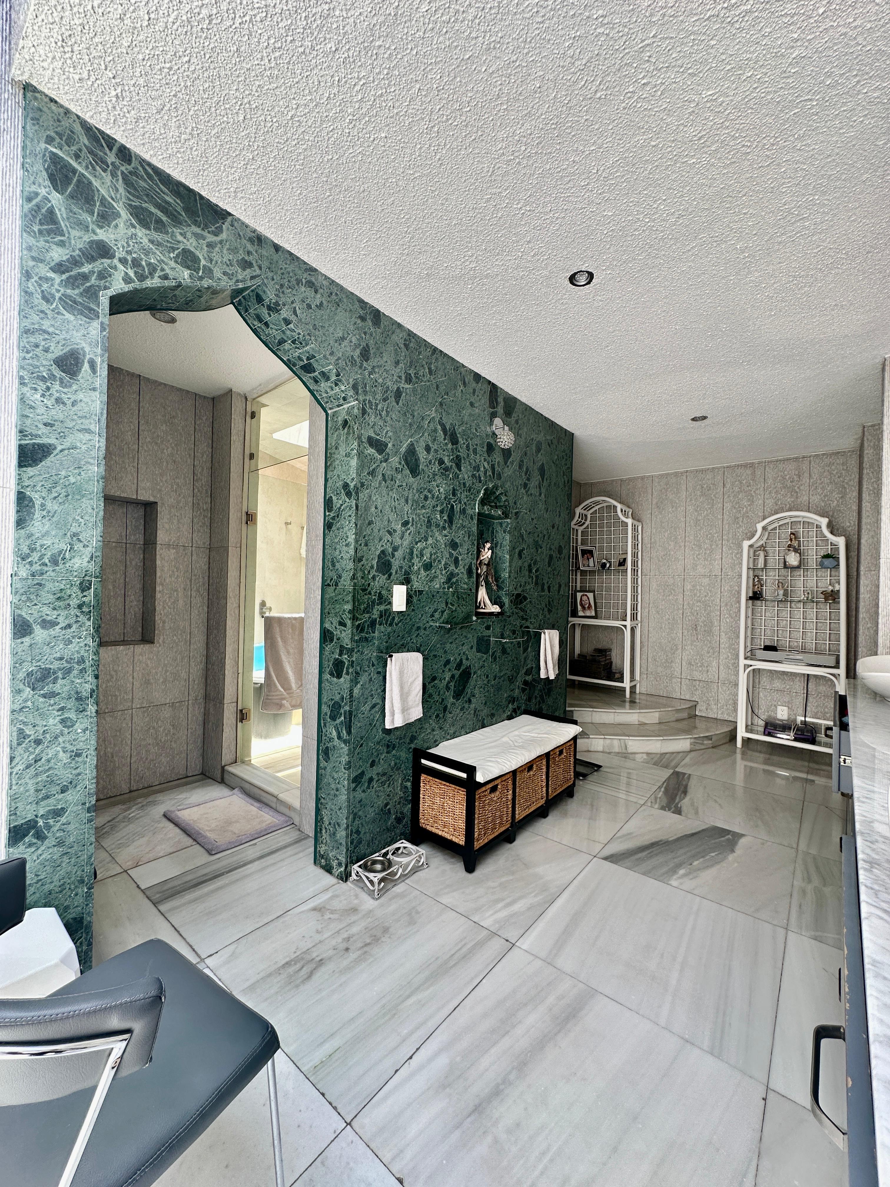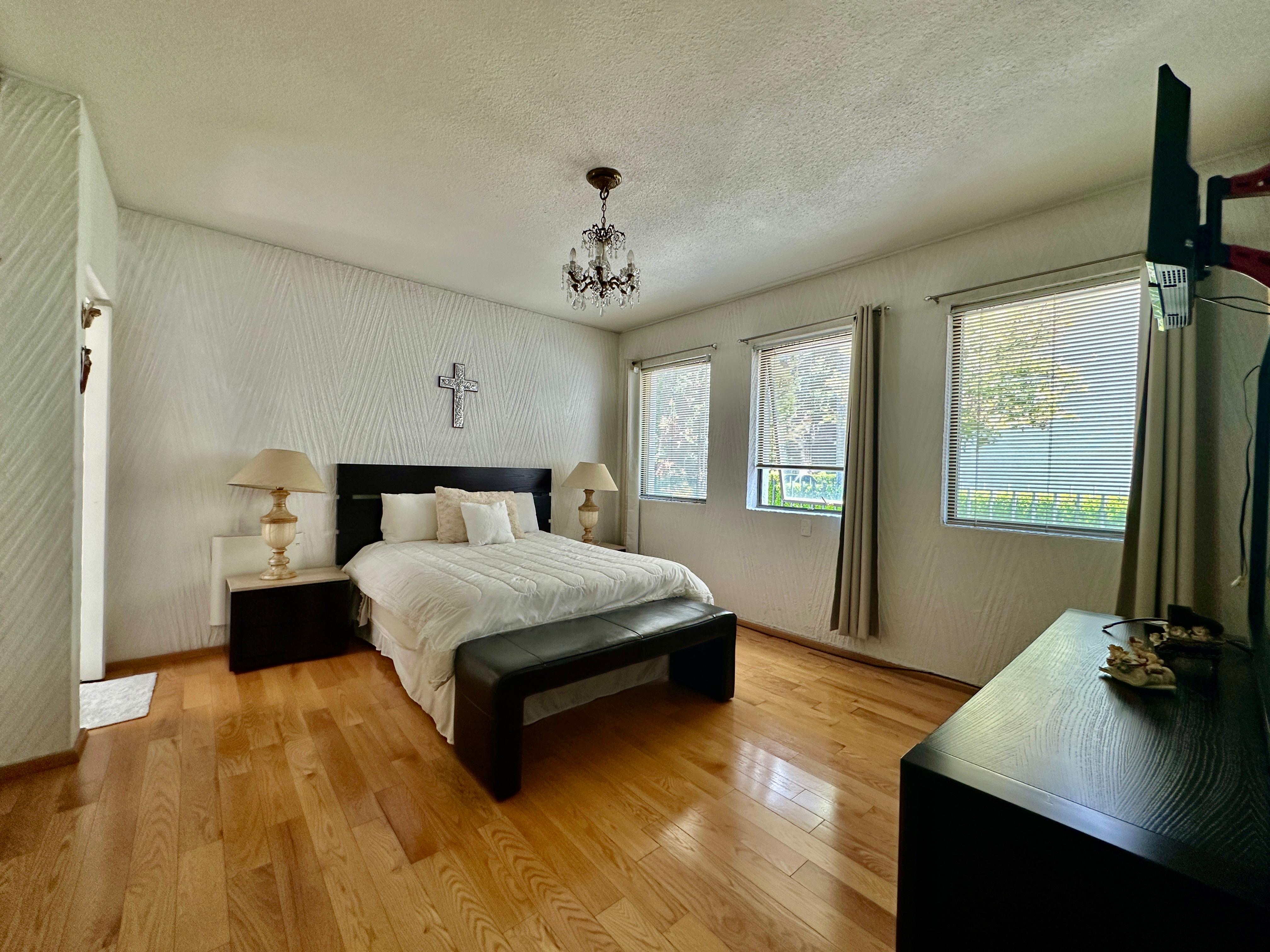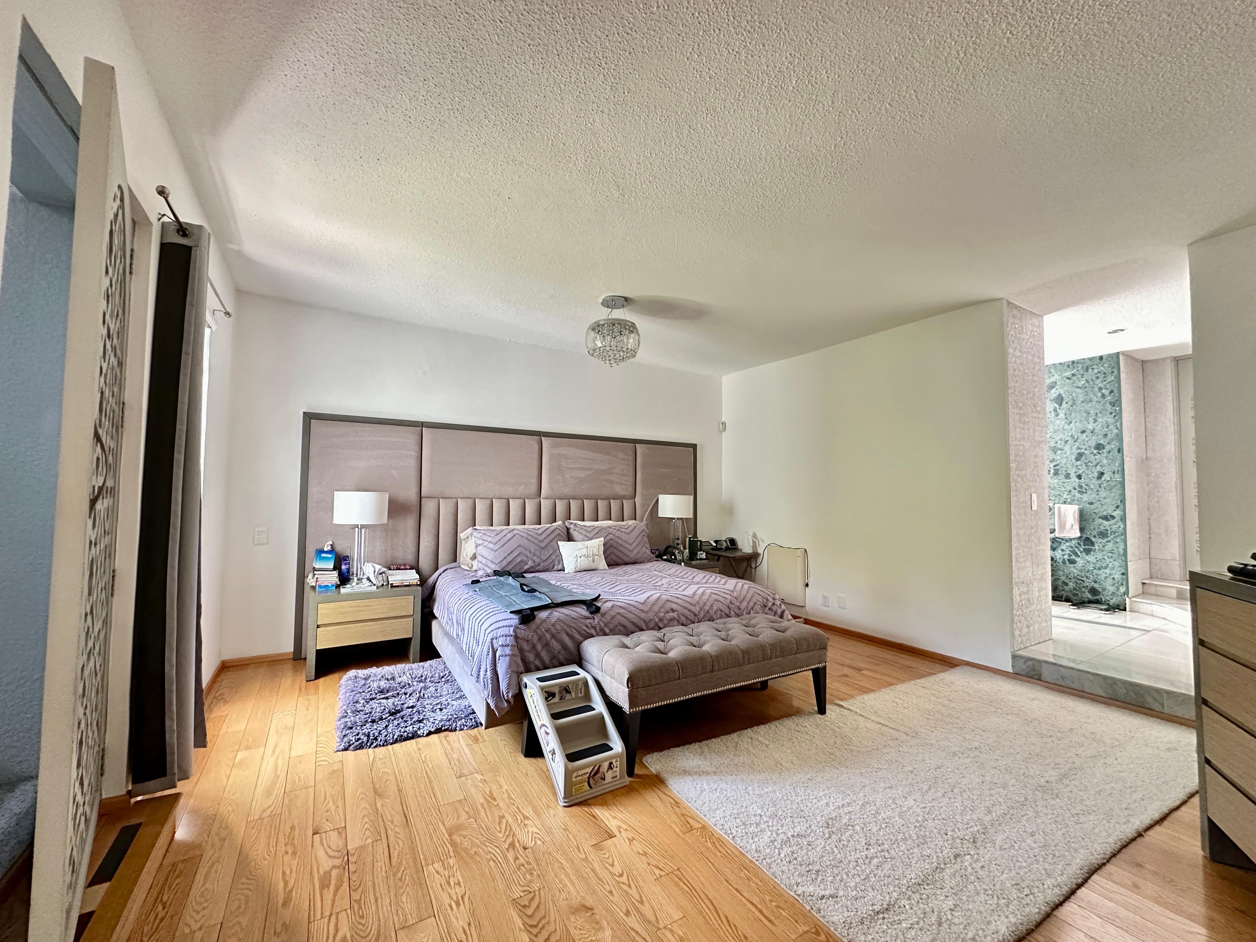 Recámara principal con una sala, baño completo, terraza techada, con 2 amplios vestidores.