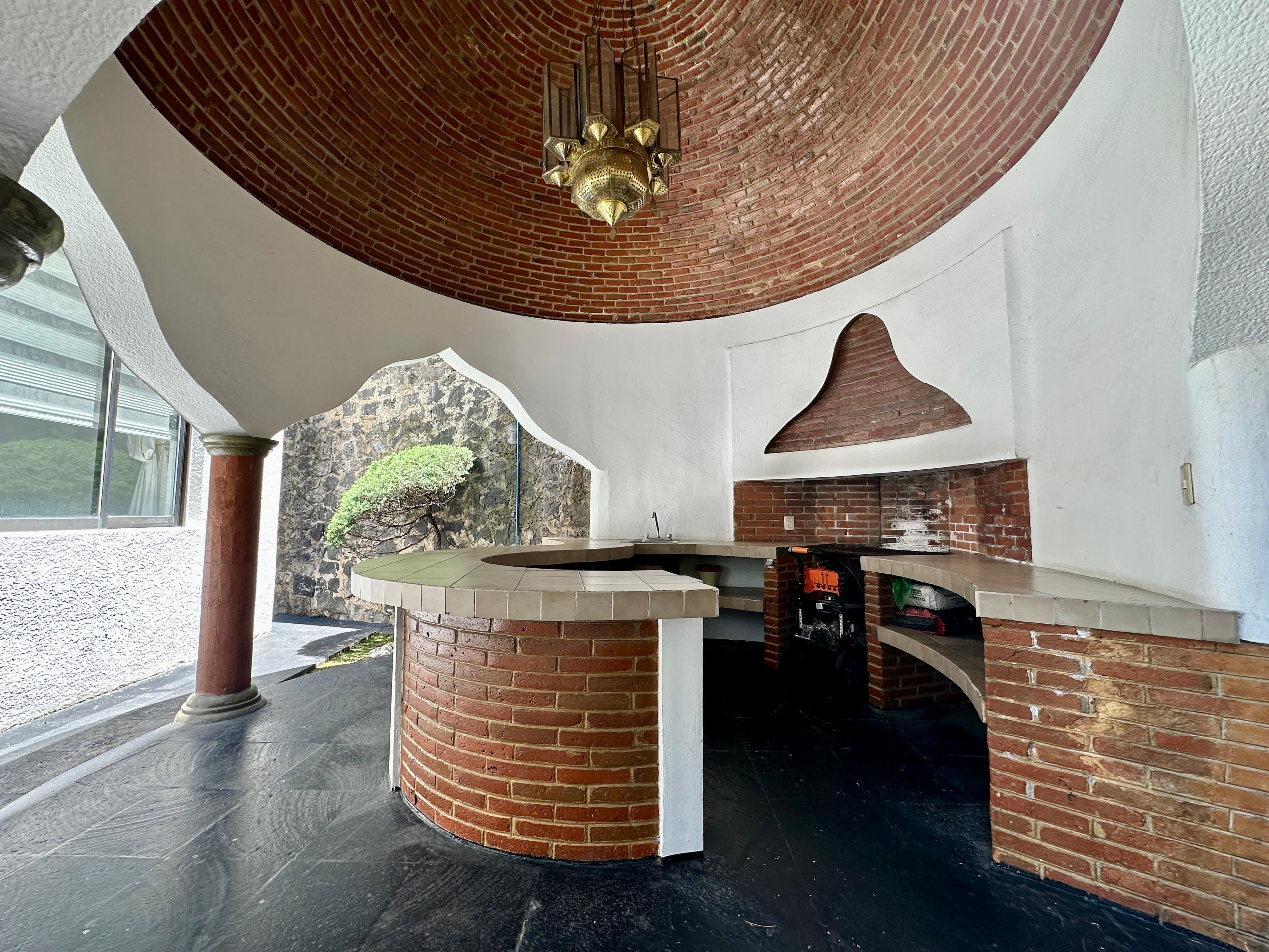 Terraza techada con asador y tarja.