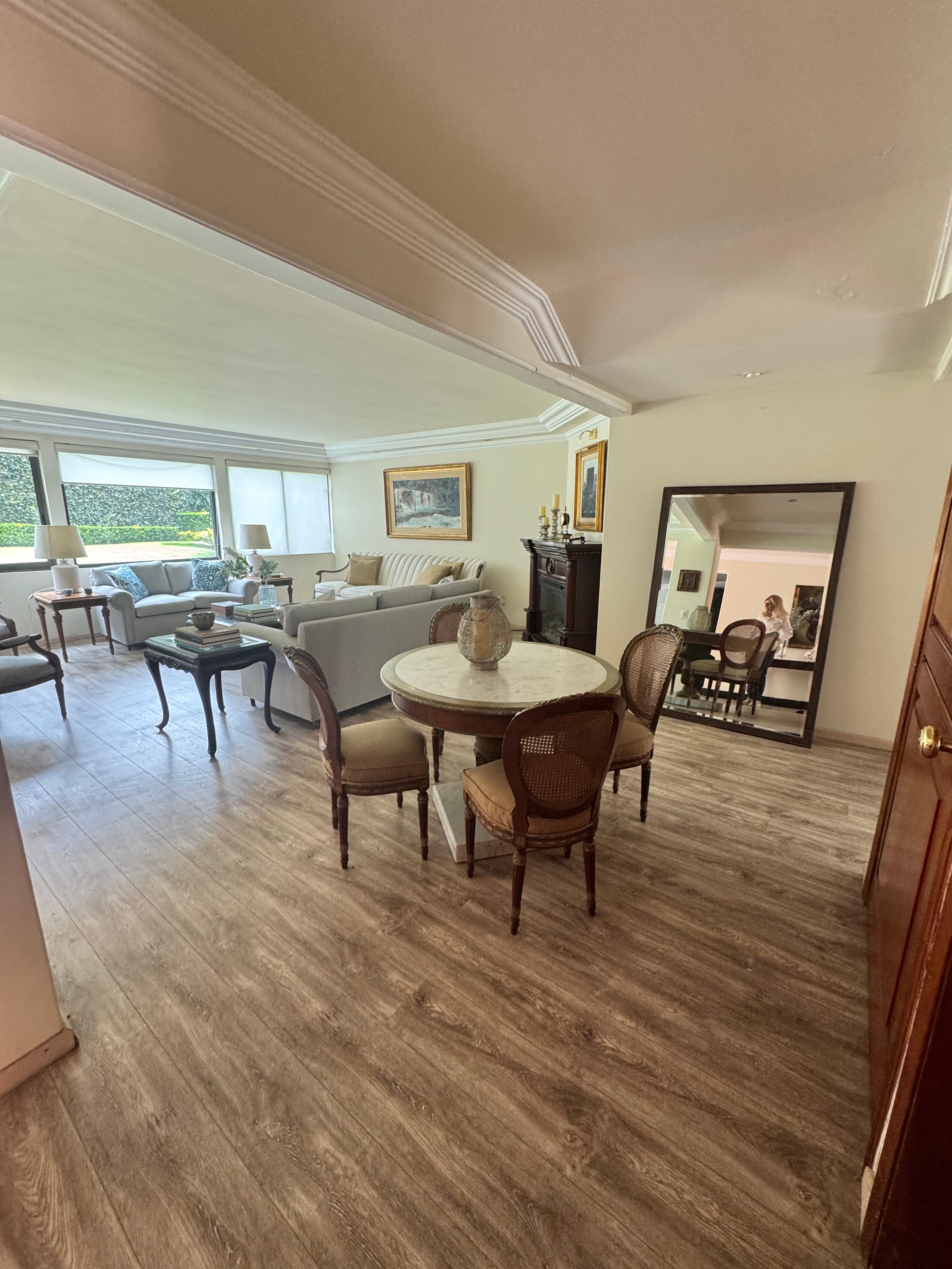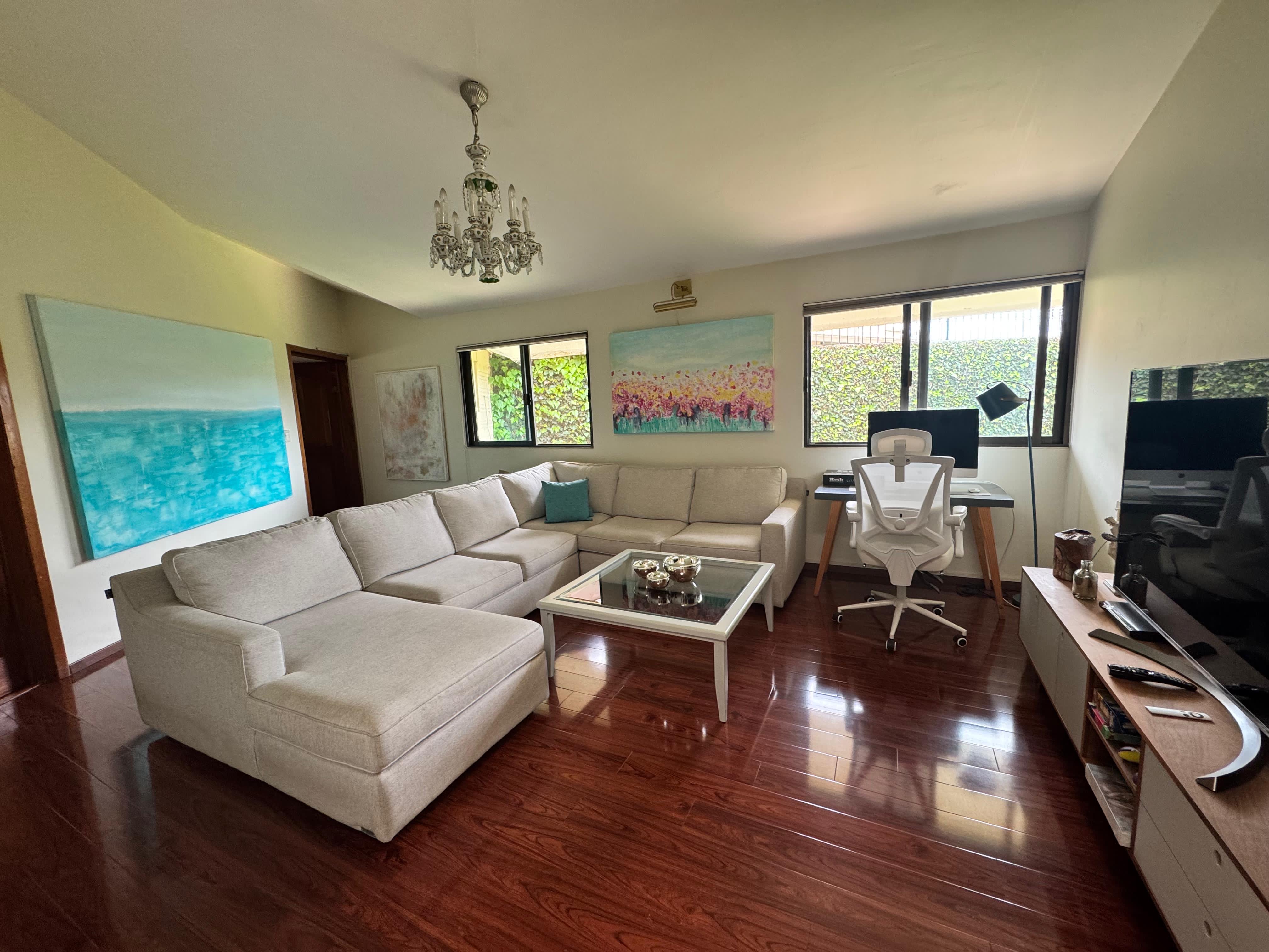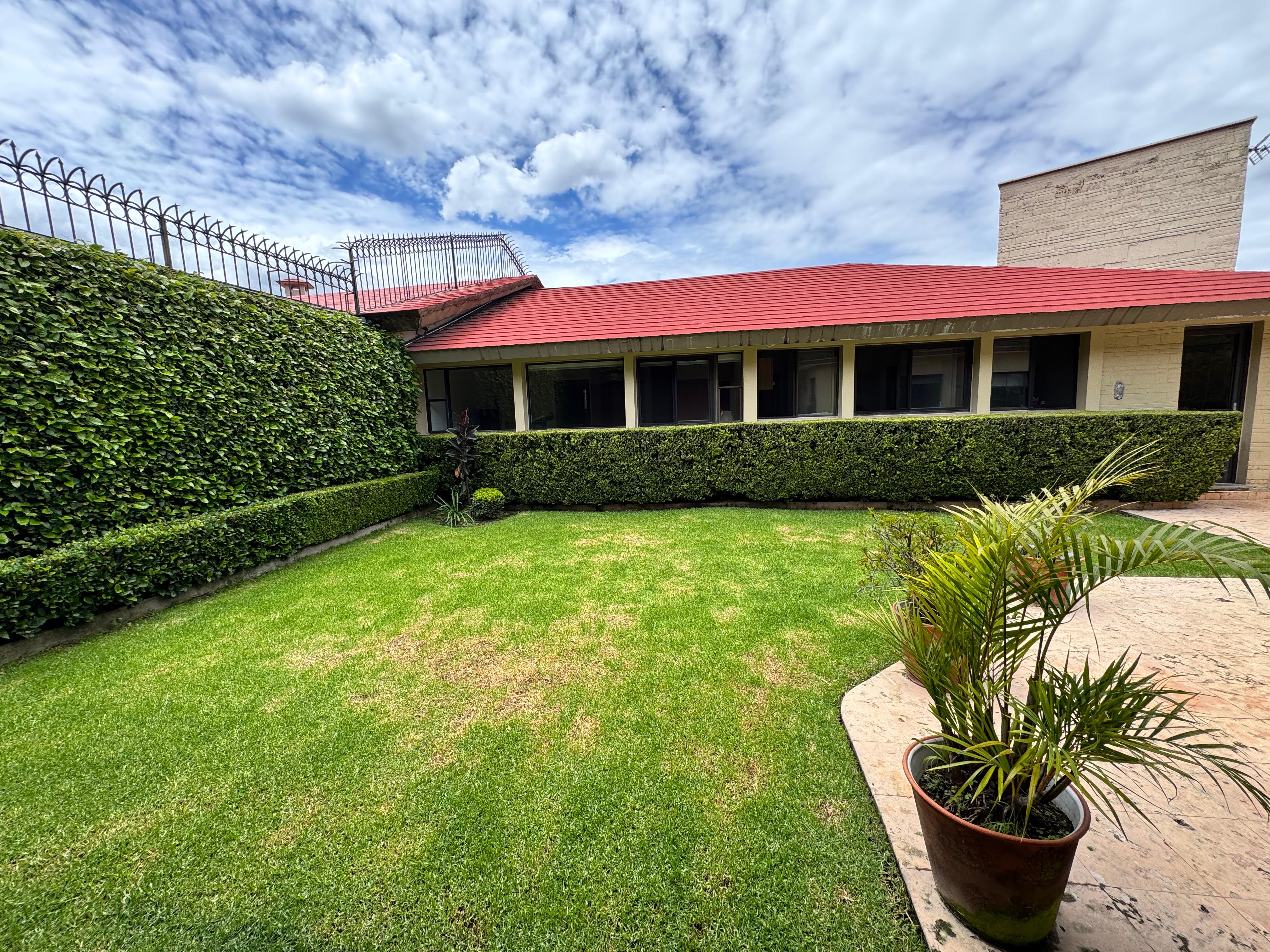 La propiedad cuenta con un amplio jardín, con mucha iluminación natural, destaca por sus espacios generosos y su diseño con doble altura en varias áreas.