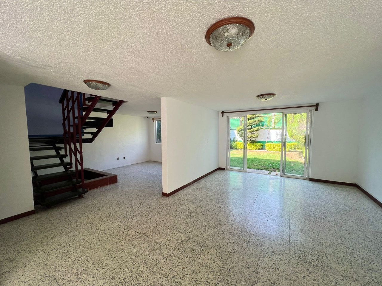 Family room con vista directa al jardín, perfecto para reuniones familiares o momentos de descanso.