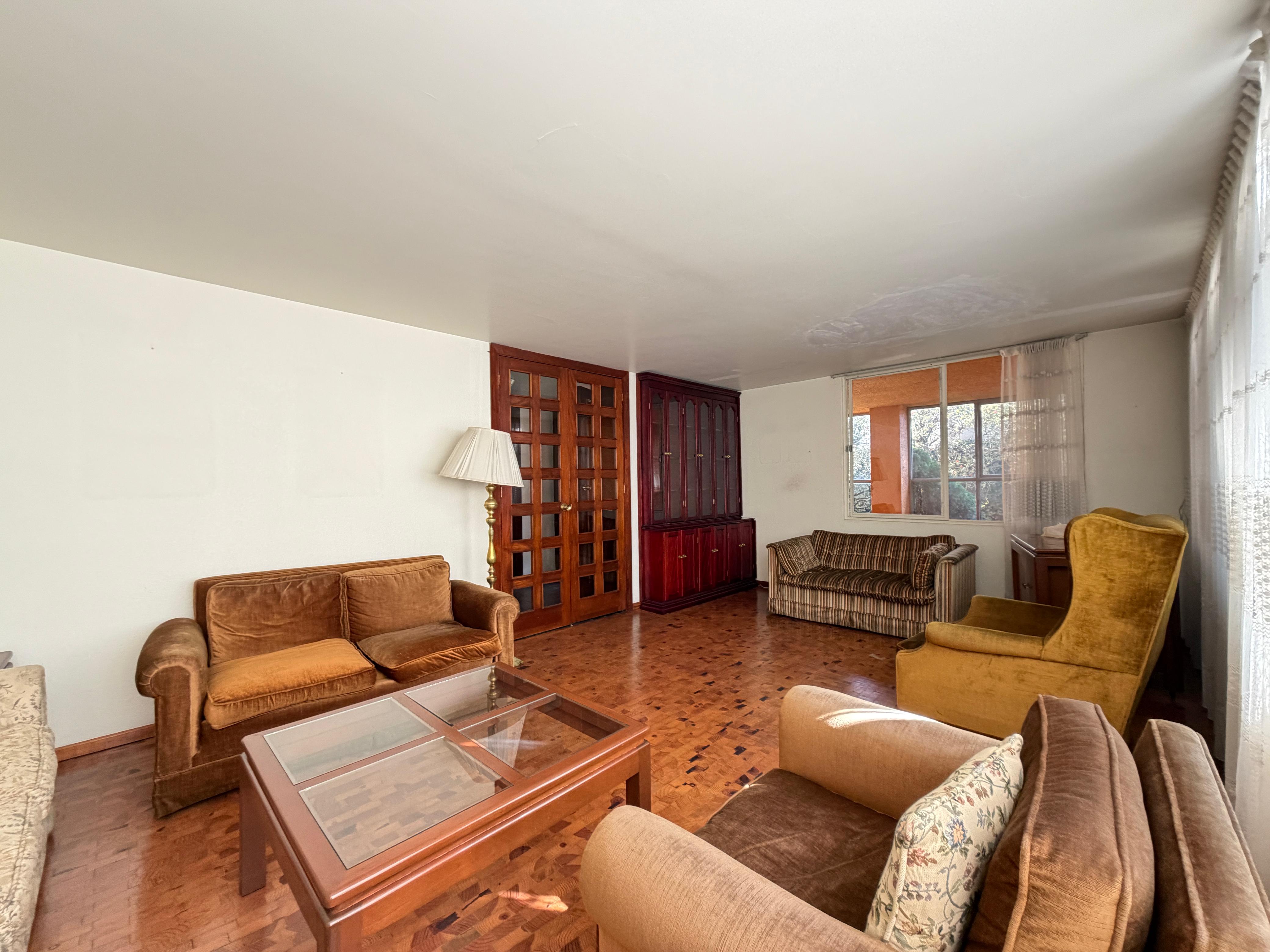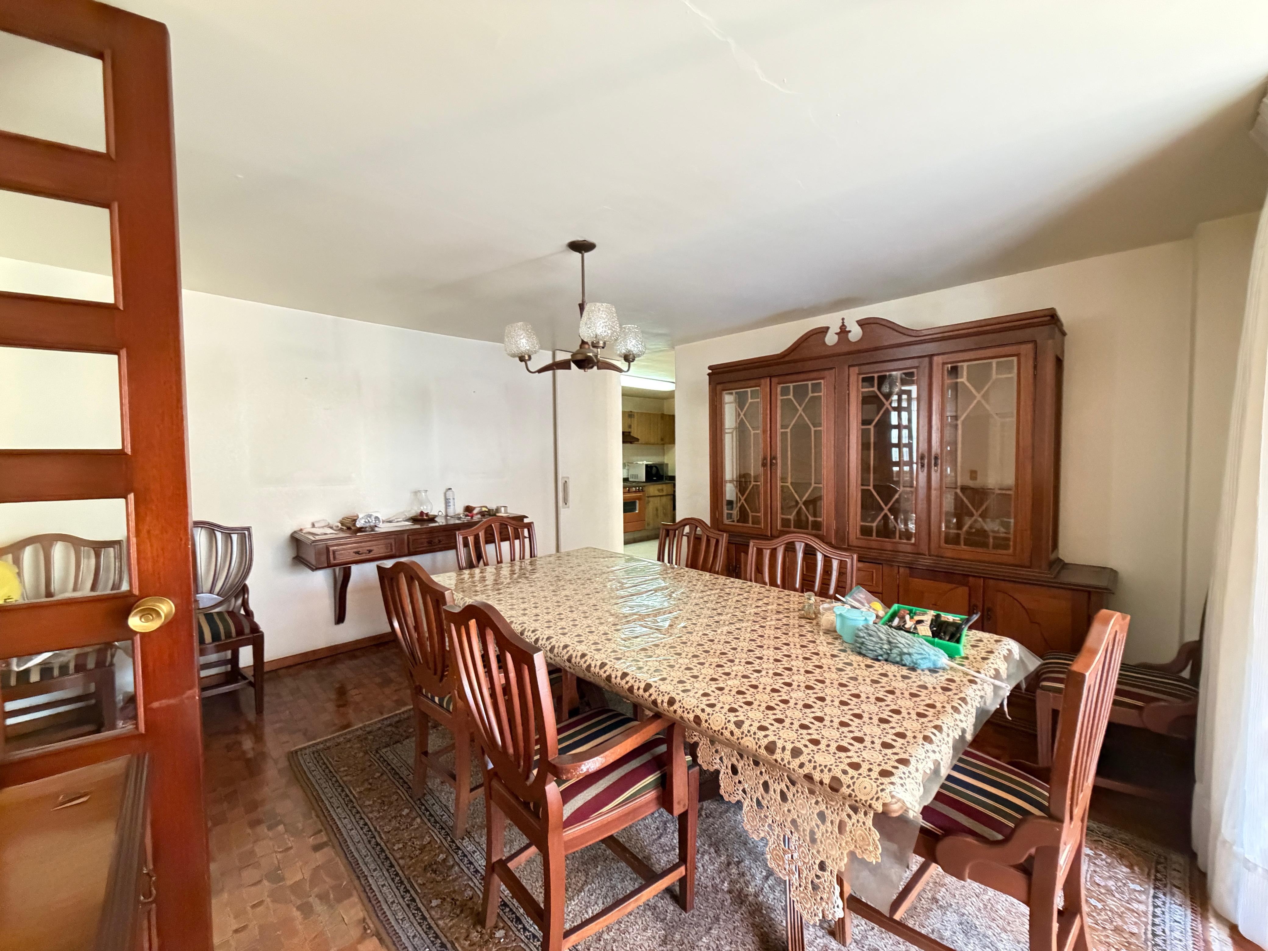 Excelente casa para remodelar por sus amplios y aprovechables espacios, con un hermoso jardín de aproximadamente 150 m. en un fraccionamiento de 400 casas, con vigilancia 24/7.