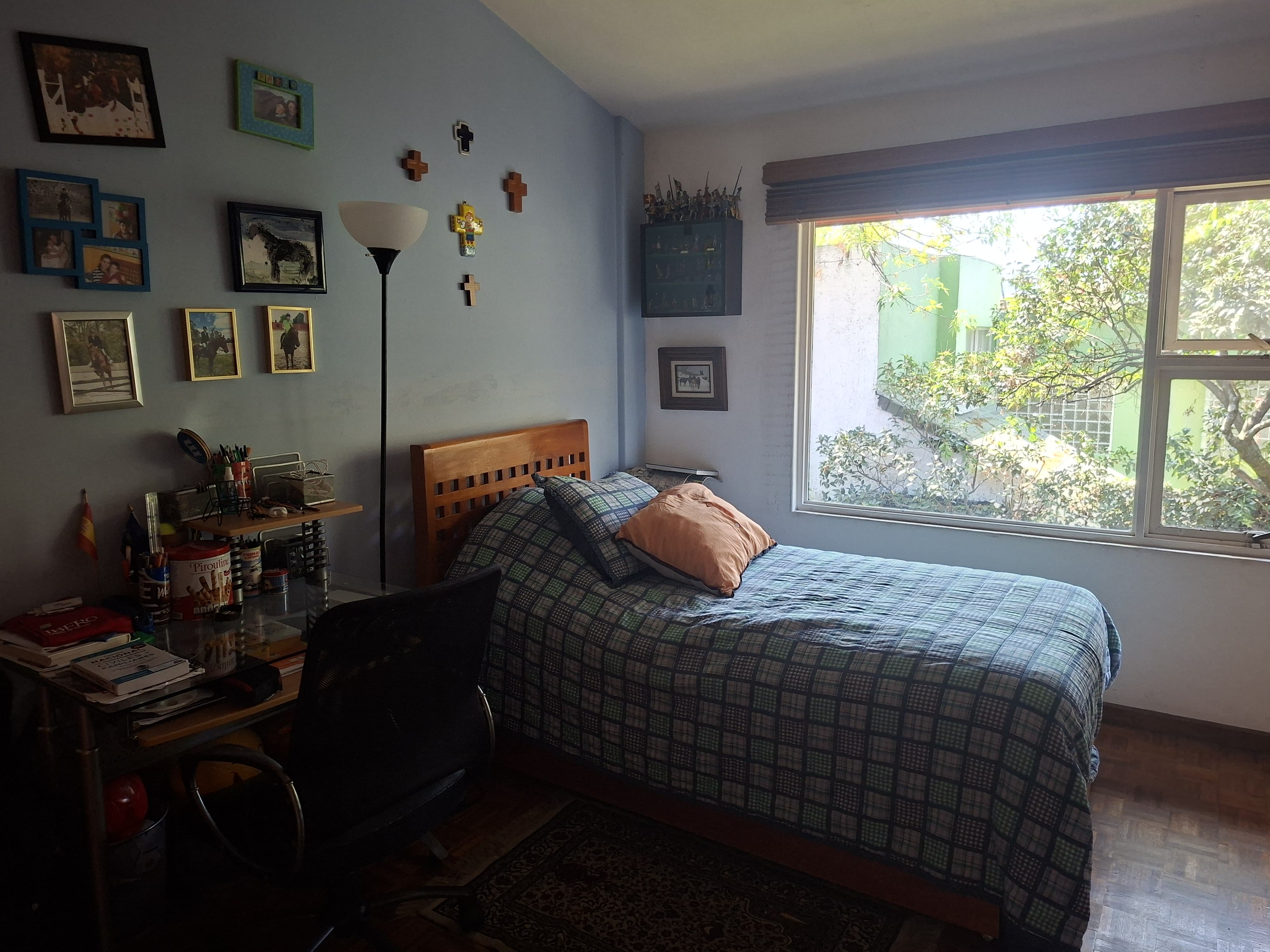 - 2 habitaciones con clósets y estupendo tamaño con vista hacia el jardín, ventilación natural y baño compartido.