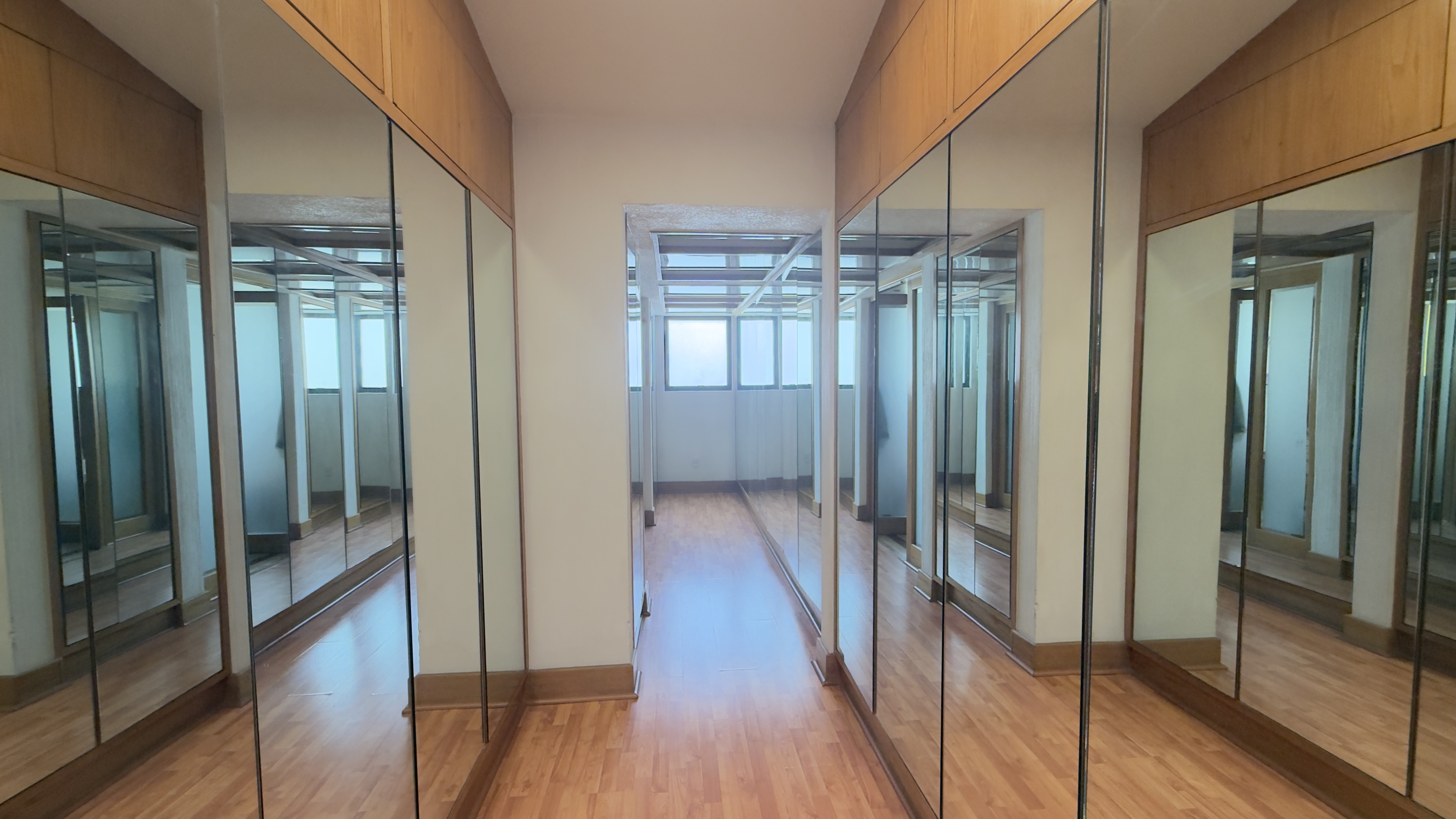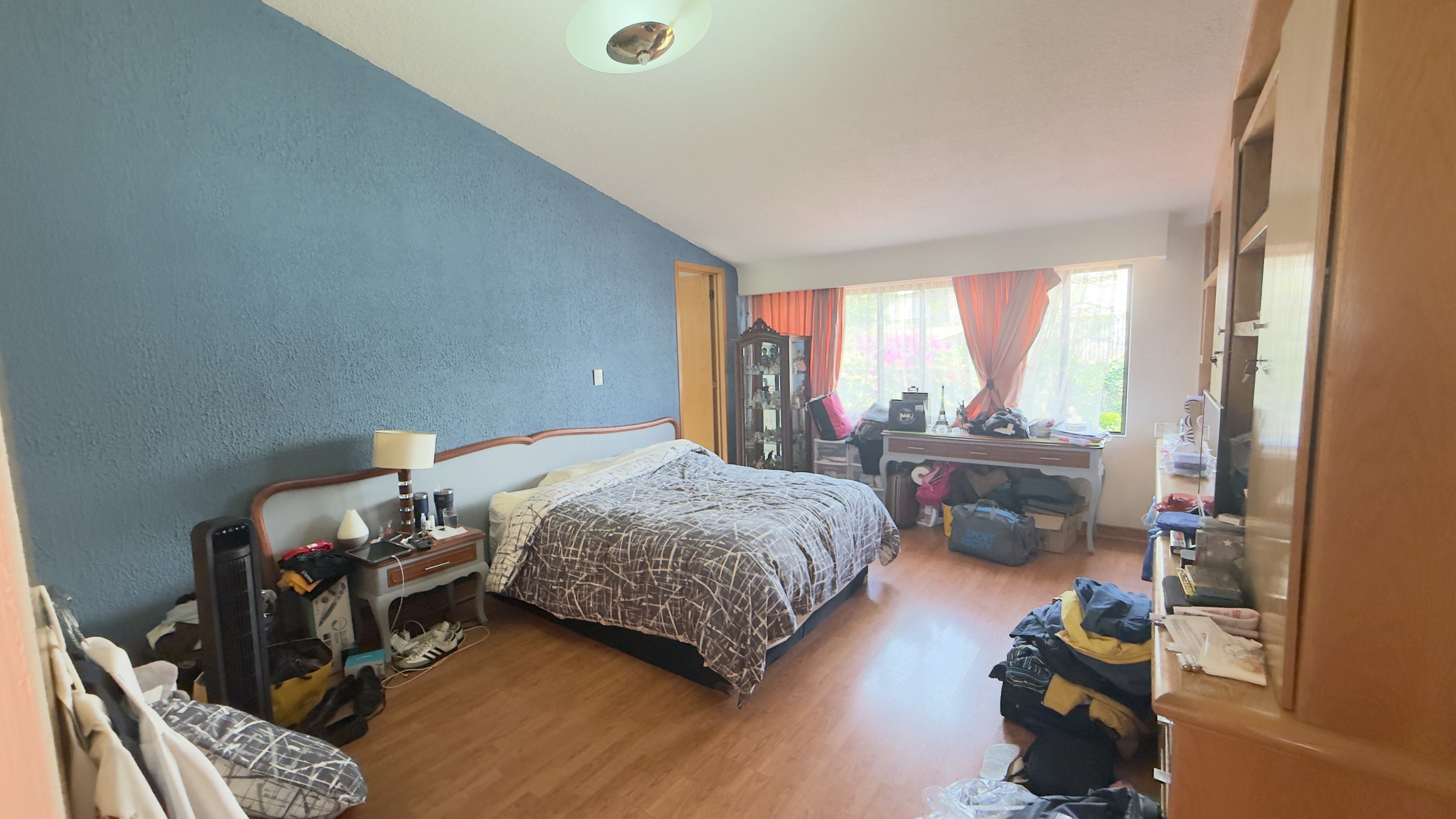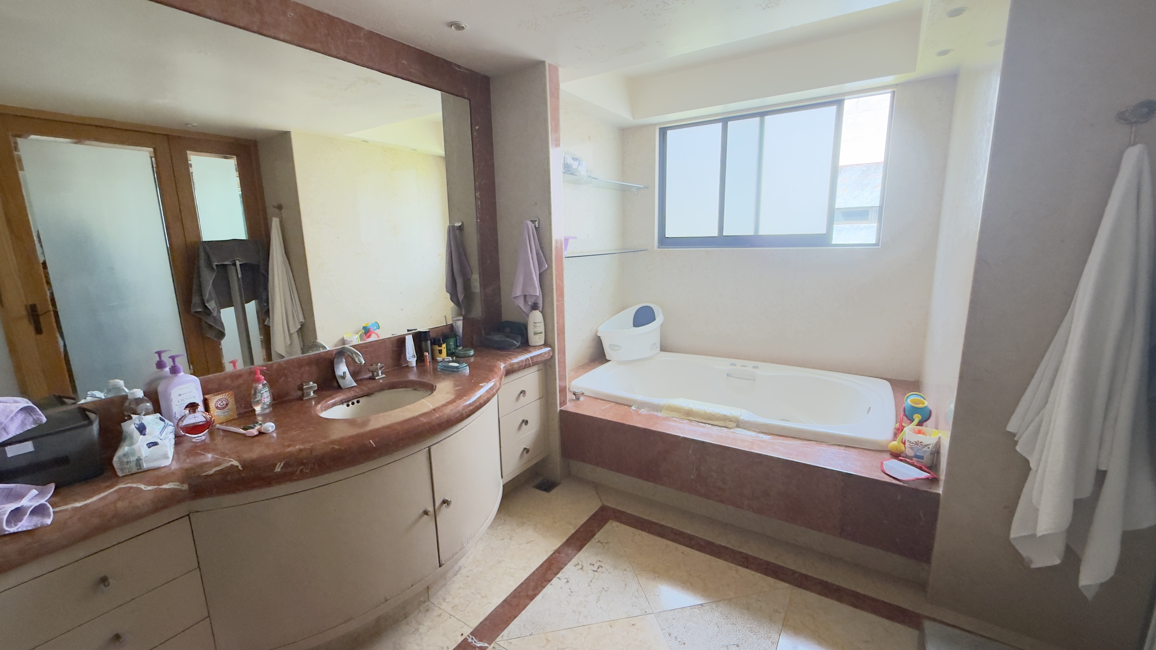 Recámara principal con gran espacio de recibidor para sala con piso de duela laminada, un enorme vestidor con excelente iluminación y ventilación. Baño con jacuzzi y pisos de mármol.