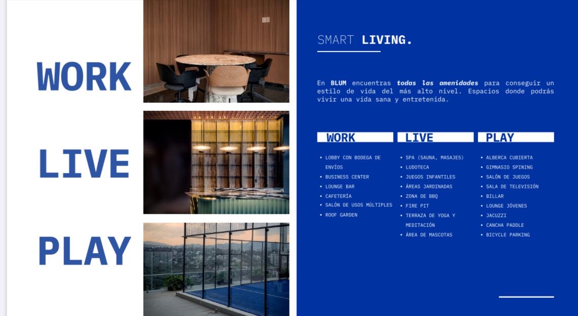 Blum residencial Santa Fé es un desarrollo innovador que ofrece espacios altamente funcionales, eficientes y lujosos, diseñado para un estilo de vida dinámico y práctico.